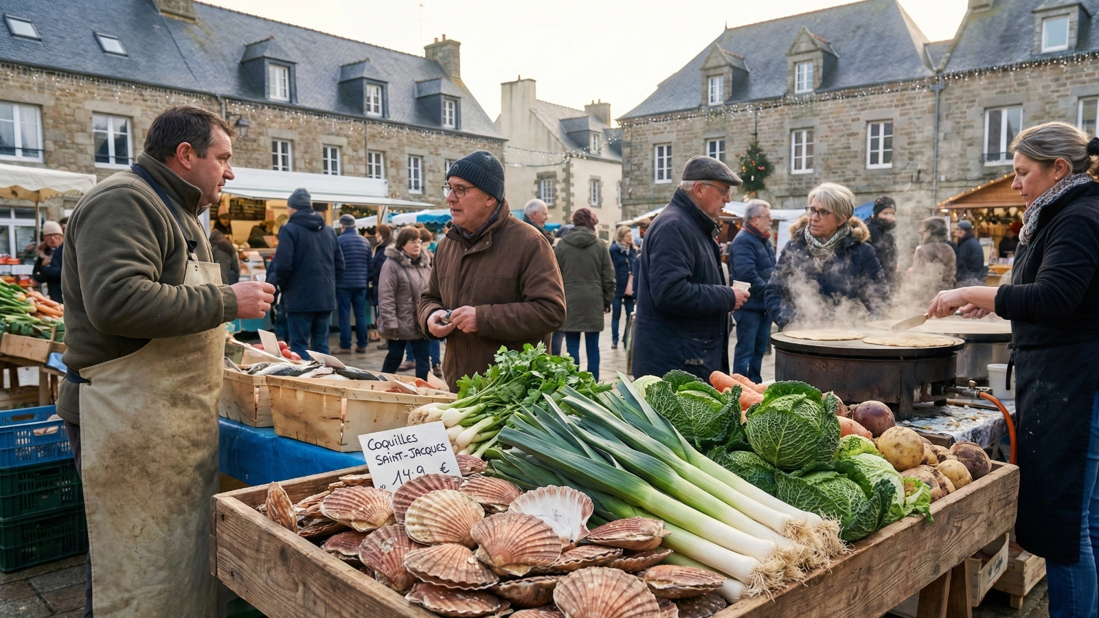Ensuite, dirigez-vous vers les maraîchers locaux pour garnir votre panier de magnifiques couleurs. Bien que l’hiver soit bien installé, la terre bretonne offre une incroyable générosité. Ainsi, vous trouverez de superbes poireaux des sables, des choux-fleurs croquants et des courges aux teintes chaleureuses. En somme, c’est exactement ce qu’il vous faut pour concocter une bonne potée traditionnelle ou un velouté onctueux de retour à la maison.